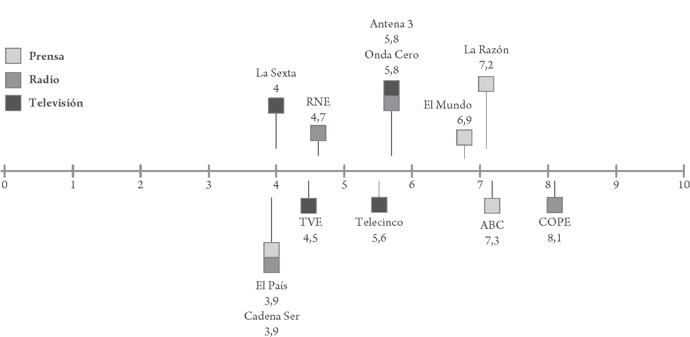 Figura 1. Ubicación ideológica percibida de los medios en España.