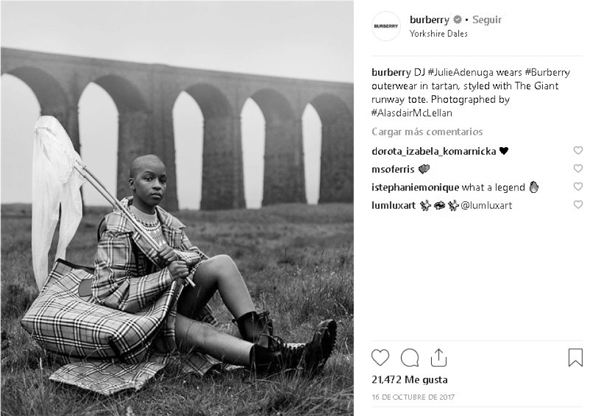 En atención a estos datos, observamos las siguientes características. Algunas marcas han aprovechado las circunstancias para crear un nuevo estilo comunicativo. Hermès, Gucci, Prada y Burberry lo han hecho incorporando elementos de su herencia y aportando una gran riqueza al relato. De este grupo, todas ellas coinciden en el uso habitual de escenarios naturales en sus publicaciones. Este tipo de espacio rompe con la dinámica tradicional del lujo cargada de artificio y se identifica con el gusto actual hacia lo natural. Balenciaga, en cambio, ha emprendido un camino aparentemente ex novo y desde la incorporación a la firma del diseñador Demna Gvasalia su estética ha ido adoptando elementos underground muy alejados del diseño arquitectónico de su fundador, el modisto español Cristóbal Balenciaga.