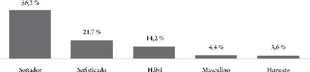 Además de la influencia que pueda ejercer el fundador o director creativo, la personalidad de la marca también se construye a través de los arquetipos que encarna. En este análisis, hemos utilizado un indicador simplificado, basándonos en la propuesta de Aaker (1997). Este autor presenta solo cinco rasgos de personalidad. Aunque las limitaciones de espacio no nos permiten examinar los personajes de un modo más profundo, advertimos que el arquetipo más representado en el total de la muestra es el soñador, seguido del sofisticado. Se trata de una relación lógica si consideramos que una de las finalidades de las marcas de moda de lujo es hacer soñar. Los resultados se pueden apreciar en la figura 6.