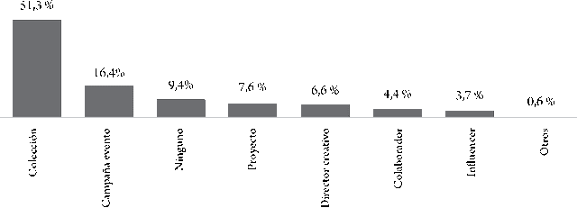 4. La poca implicación de las marcas de moda de lujo en las cuestiones actuales y en los problemas sociales. Del total de publicaciones que hemos analizado, solo el 3 y el 0,5 % tratan estos temas, respectivamente. Destaca, no obstante, la actuación de marcas como Louis Vuitton, Givenchy, Gucci o Dior, que recurren a esta práctica de un modo más habitual.