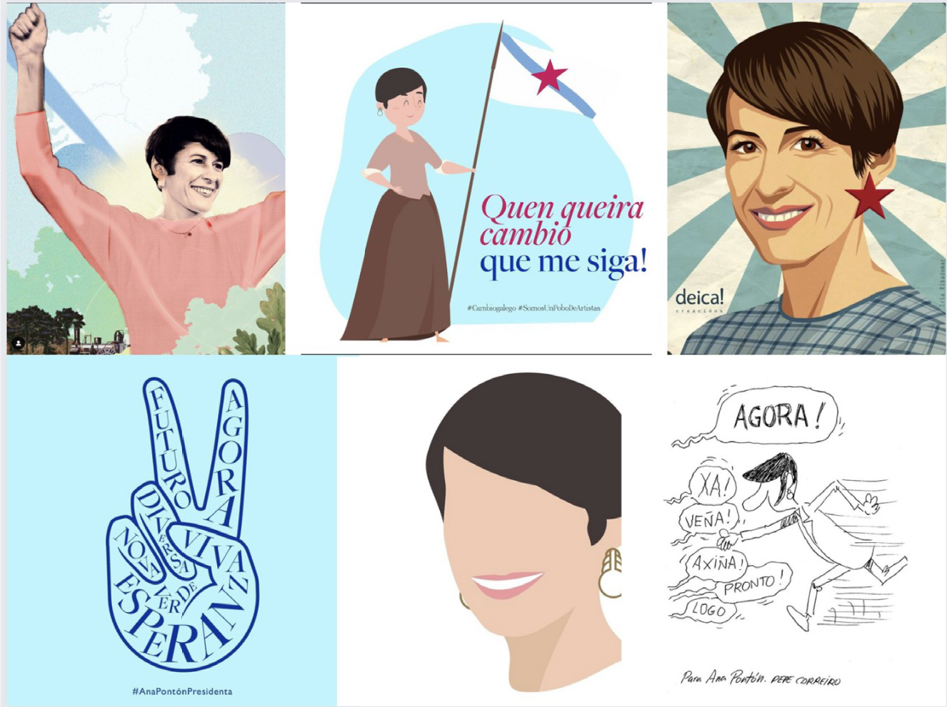 Los perfiles del BNG y de Ana Pontón compartieron las ilustraciones de la líder nacionalista o del símbolo de la victoria, como un elemento esencial en la construcción de la imagen de la candidata como un líder de éxito. Este símbolo, frecuentemente representado por el gesto de levantar dos dedos en forma de V, trasciende las barreras del lenguaje y las diferencias culturales y se convierte en una herramienta de comunicación visual que puede ser inmediatamente reconocida a nivel global.